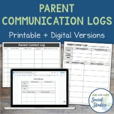 Parent Communication Log for Middle High School | Editable Digital Contact Sheet