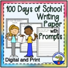 100th Day of School Writing Prompts Lined Paper with Editing Checklist and Easel