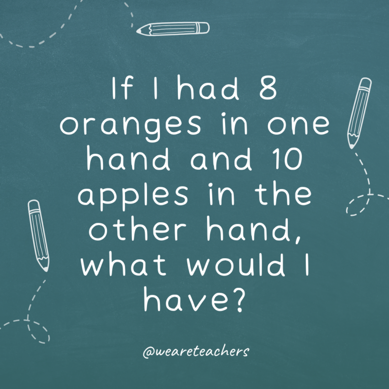 24. If I had 8 oranges in a single hand and 10 apples within the different hand, what would I’ve?
