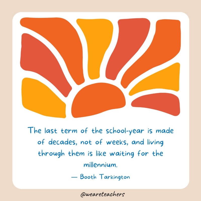 2. “The final time period of the school-year is manufactured from a long time, not of weeks, and residing by way of them is like ready for the millennium.” — Booth Tarkington