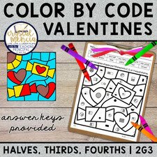 2G3 Halves, Thirds, & Fourths | Color by Code Mystery Valentine’s Day Pictures