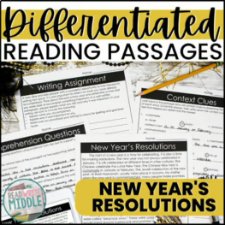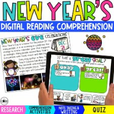 New Years Resolution Writing, Digital New Years Reading Comprehension Worksheets