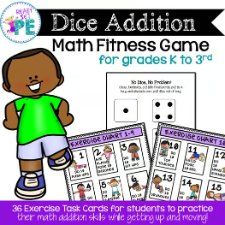 Dice Addition 1-36 Math Fitness Game for PE, Brain Breaks & Recess
