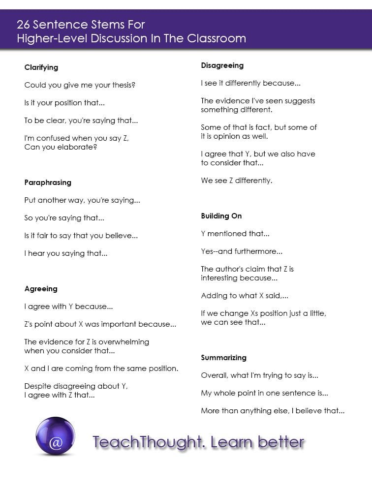 26 Sentence Stems For Significant Dialog In The Classroom