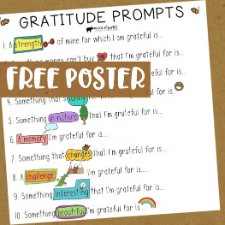 Apply positivity with free gratitude posters that embody writing prompts. They assist college students consider completely different areas to be glad about, like what gives them energy or what comforts them.