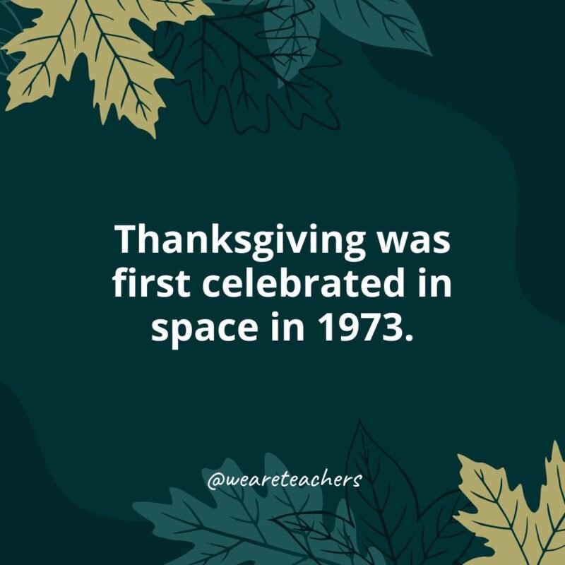 The primary Thanksgiving meal in area was eaten by American astronauts in 1973 aboard the Skylab area station. Their meal included irradiated turkey, shrimp cocktail, and cranberry sauce.