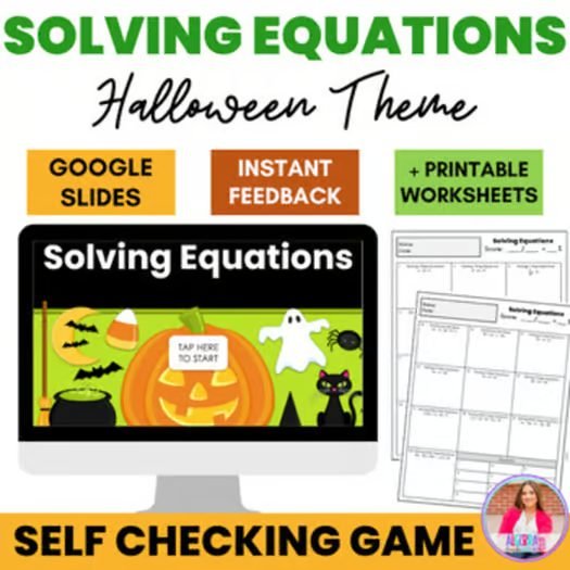 Solving Equations Halloween Theme Google Slides Digital Game End of Unit Review