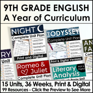 9th Grade English ELA Curriculum Bundle for a Full Year, 15 Units & Lesson Plans
