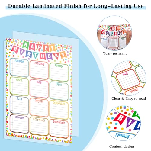 FaCraft Birthday Chart Poster for Classroom – Confetti Happy Birthday Poster Calendar Boho Reusable Laminated Classroom Birth day Chart Class Bulletin Board Decorations Back to School Teacher Supplies
