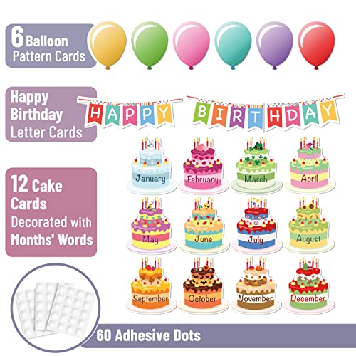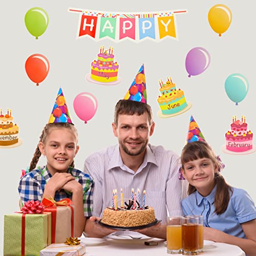Mr. Pen Happy Birthday bulletin board set comes with 60 adhesive dots, 6 balloon pattern cards, 1 “HAPPY” letter banner, 1 “BIRTHDAY” letter banner, and 12 pieces of different styles of decorative cake cards that are bright and colorful.