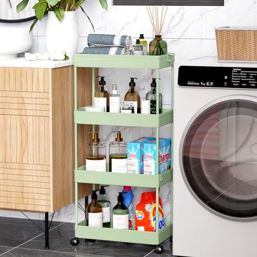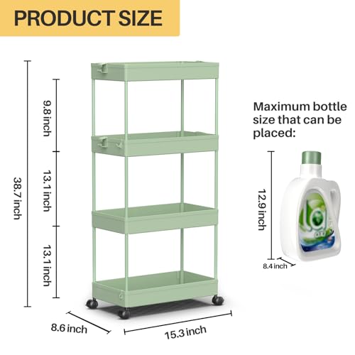Specification: SPACEKEEPER Storage Cart 4-Tier, Bathroom Rolling Cart Utility Storage Organizer Shelf Mobile Shelving Unit for Kitchen Living Room Bathroom Laundry Room & Dressers, Green