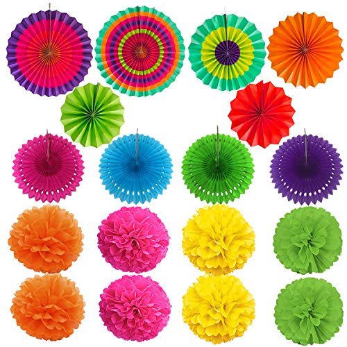 Specification: ZERODECO Party Decoration, 21 Pcs Multi-color Hanging Paper Fans, Pom Poms Flowers, Garlands String Polka Dot and Triangle Bunting Flags for Birthday Parties, Wedding Décor, Fiesta or Mexican Party